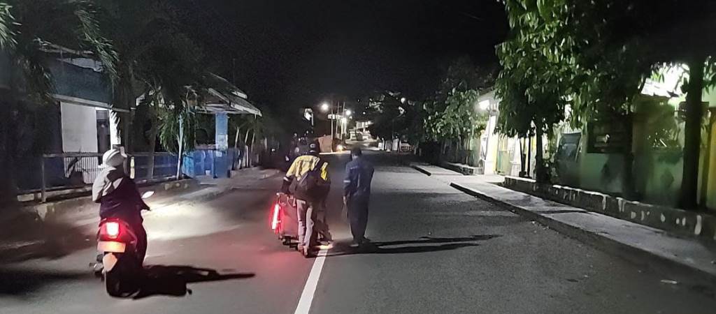PORTAL LUWUK—Dinas PUPR Banggai melengkapi beberapa ruas jalan di Kota Luwuk dengan marka. Pekerjaan marka ini dilakukan saat ruas jalan sepi dari lalu lalang kendaraan, bahkan dilaksanakan pada malam hari.