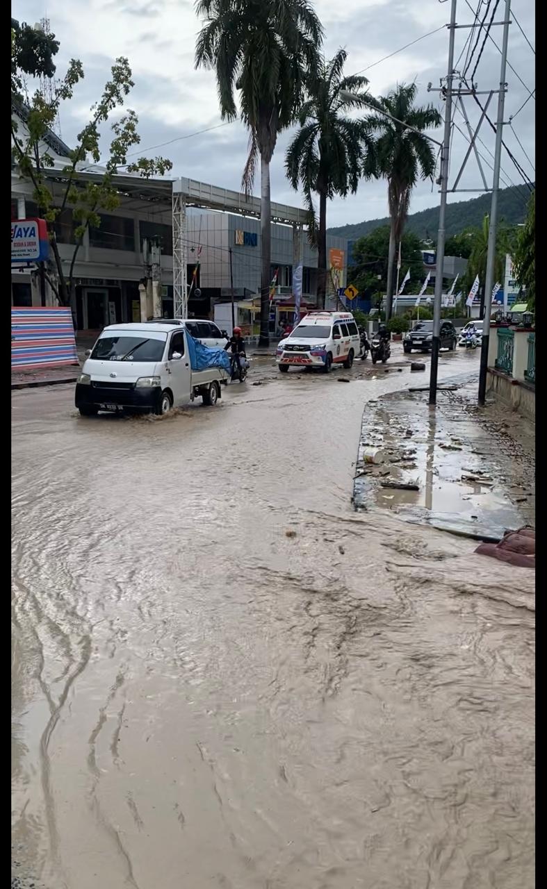 Banjir yang melanda Kota Luwuk pada Selasa 15 Juli 2025. PUPR Banggai berharap BPJN Sulteng menyahuti usulan untuk rehabilitasi saluran drainase maupun pembangunan box Culvert di sejumlah titik di ruas jalan nasional yang menjadi kewenangan BPNJ Sulteng Wilayah 14 itu. (dok ist)